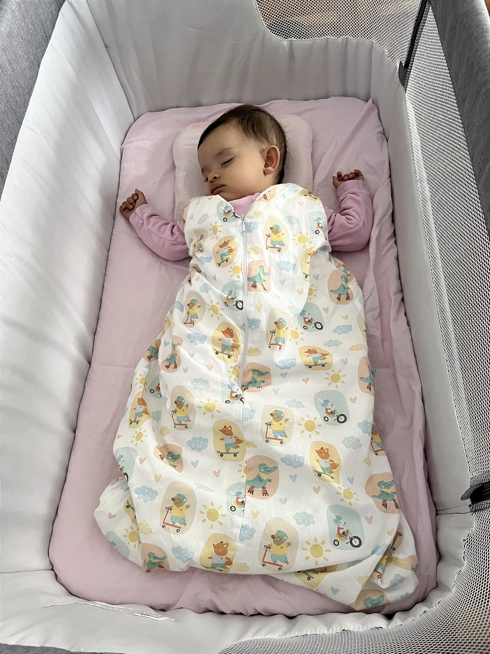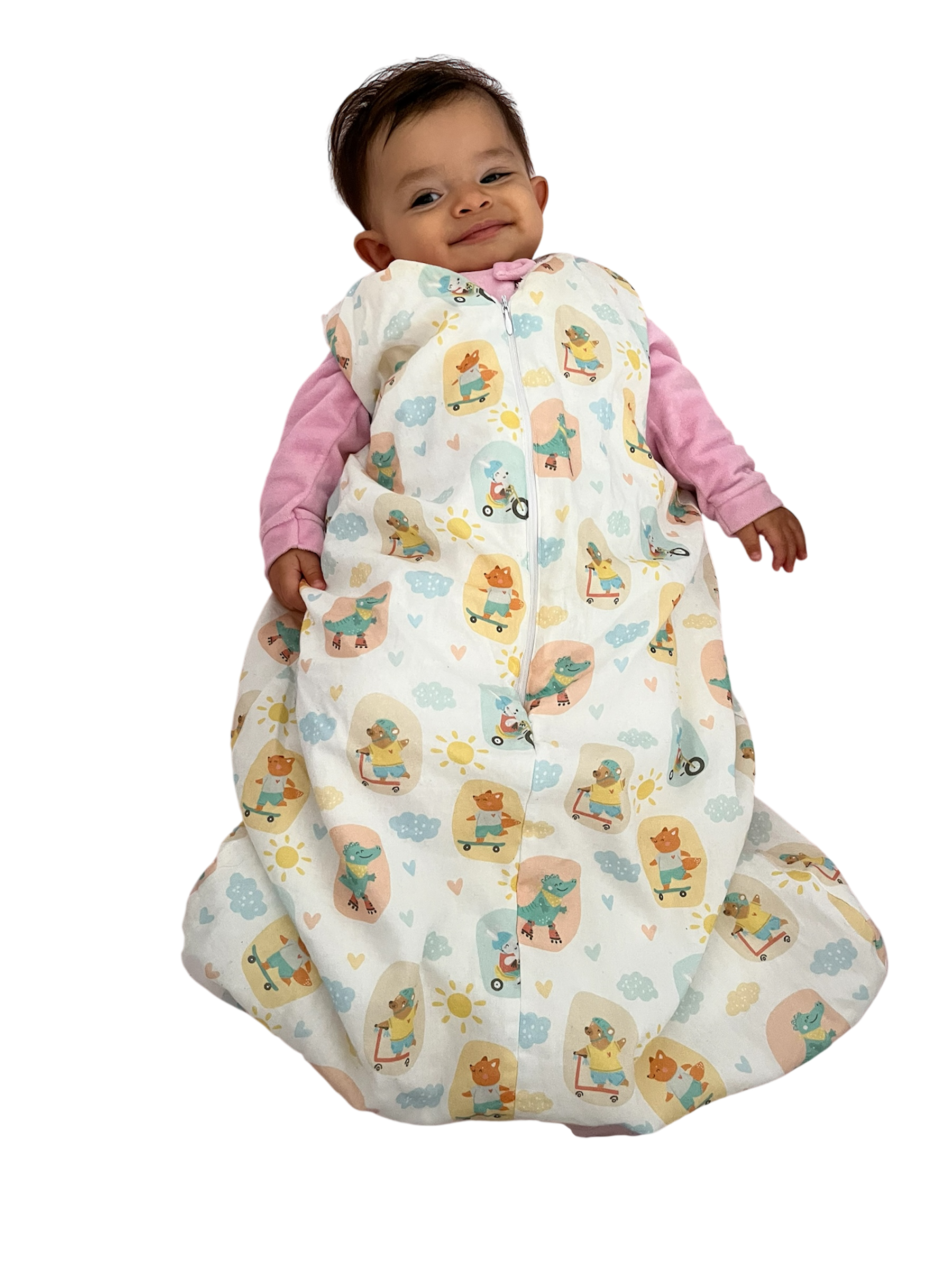 É o saquinho de dormir que mantem os pequenos cobertos, aquecidos e confortáveis durante o sono. Disponível nos tamanhos P (para bebês de 0 a 6 meses) e M (para bebês de 6 a 12 meses), facilitando o cuidado diário dos recém-nascidos até 1 aninho.