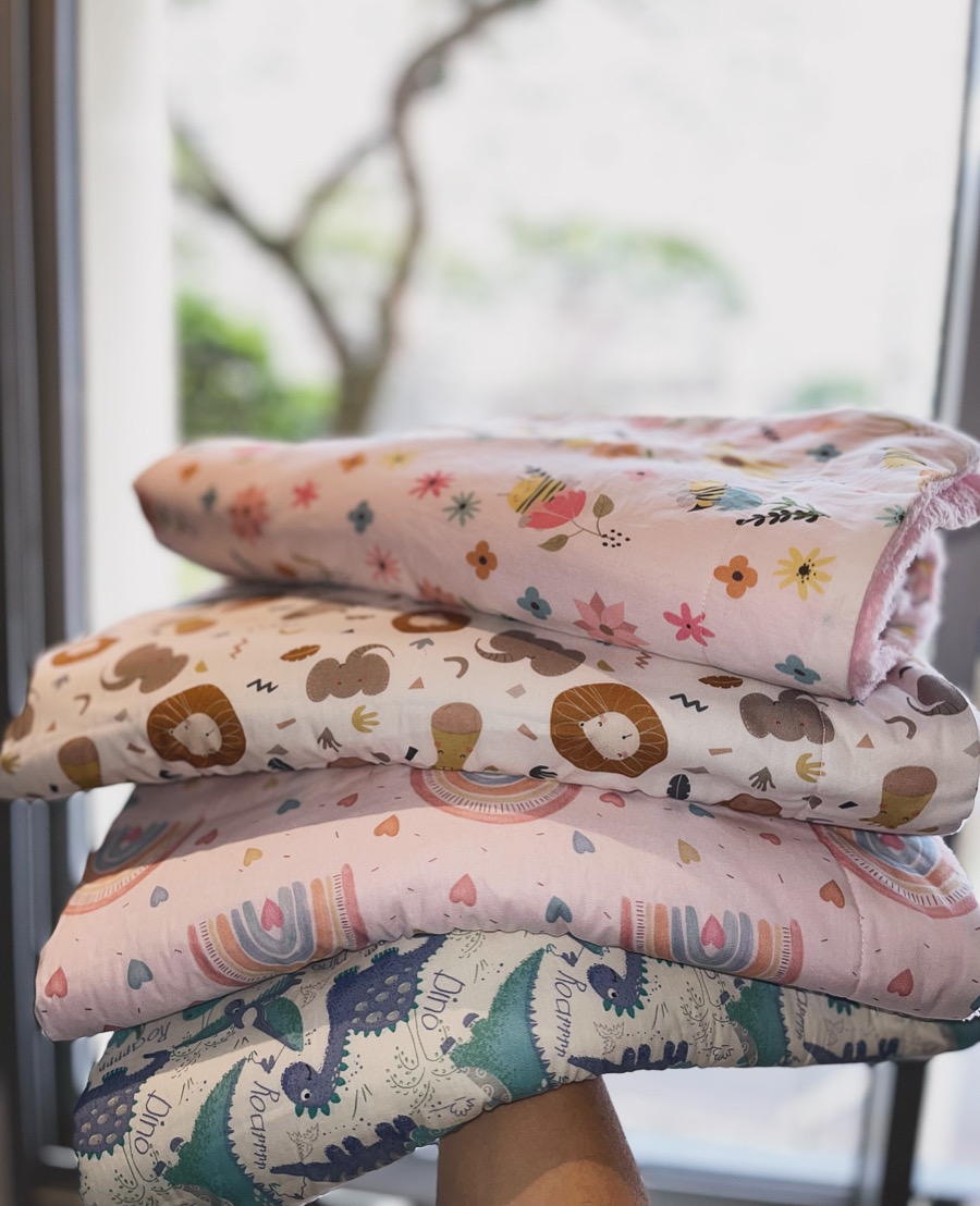 Manta pequena para bebês com tecido 100% algodão e forro de tecido soft. Antialérgico.
